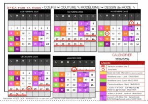 Calendrier DFEA Fais ta Mode Sept Janv2025-2026